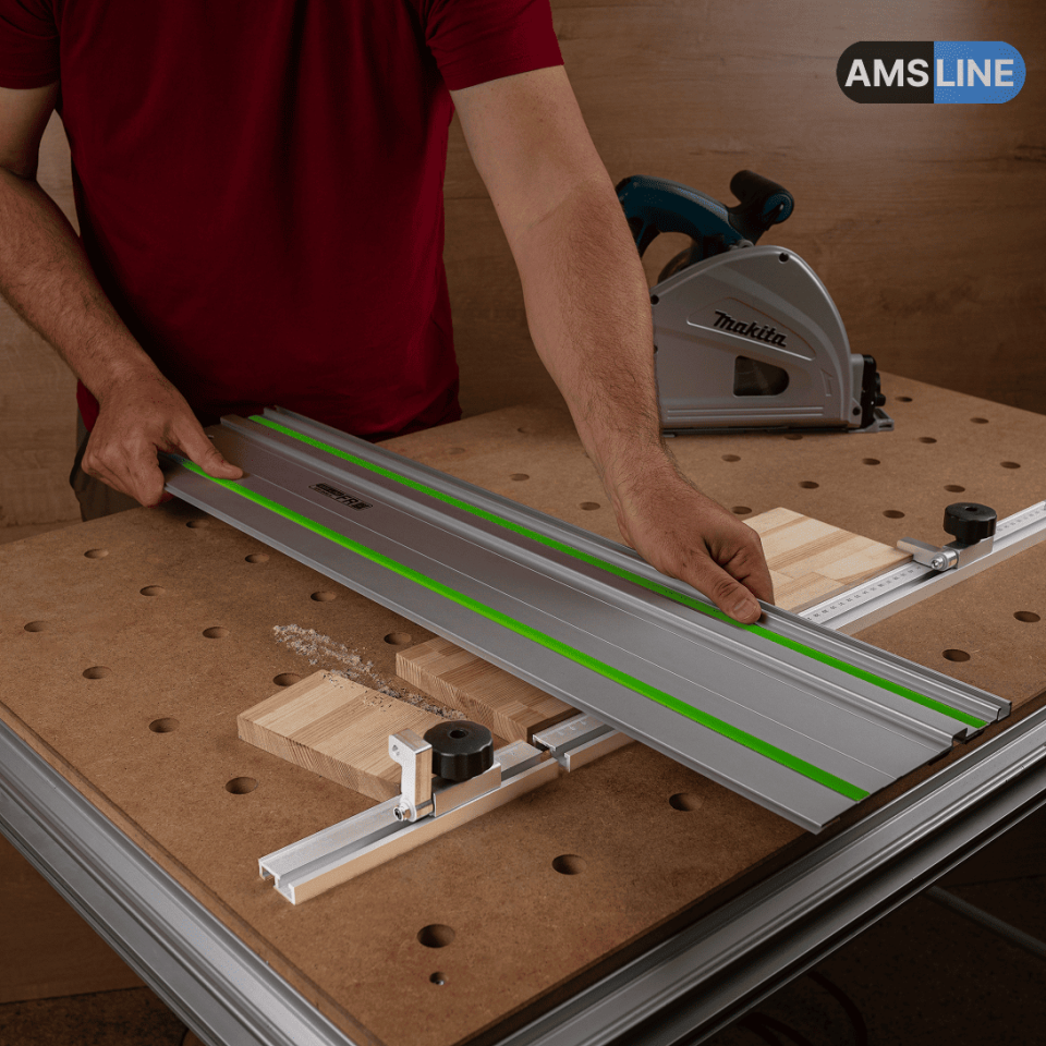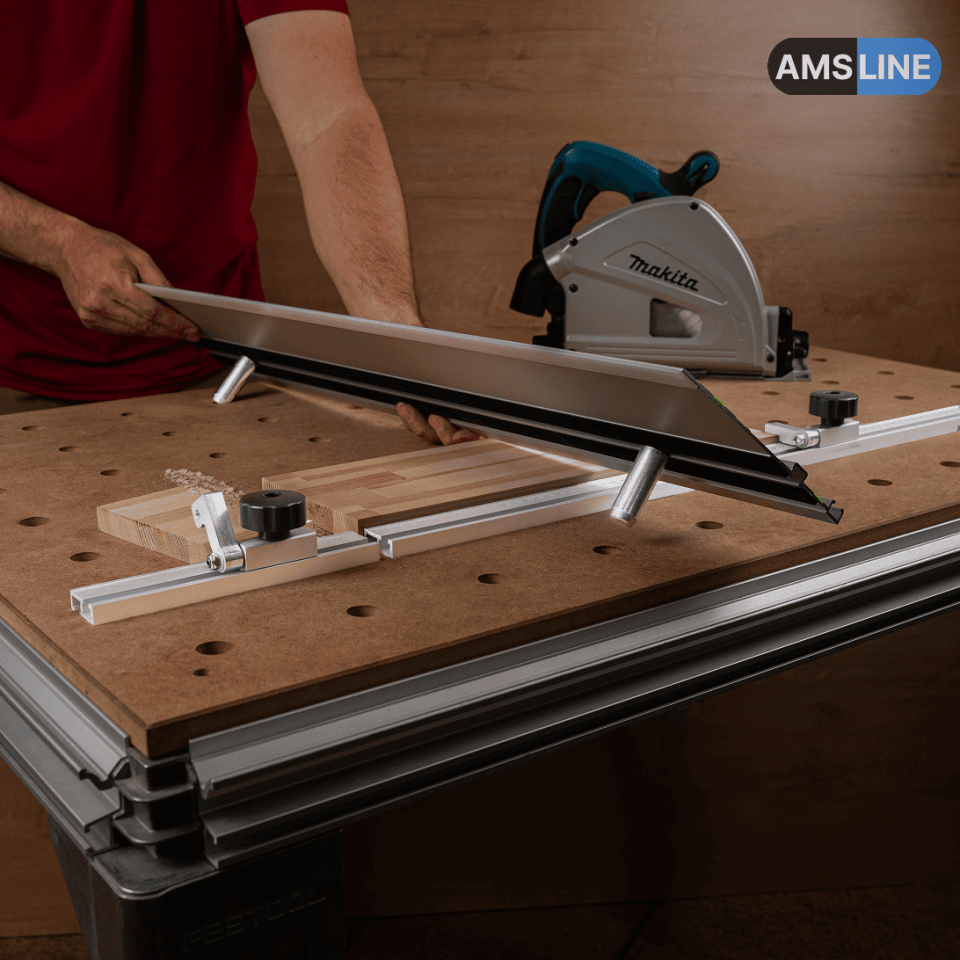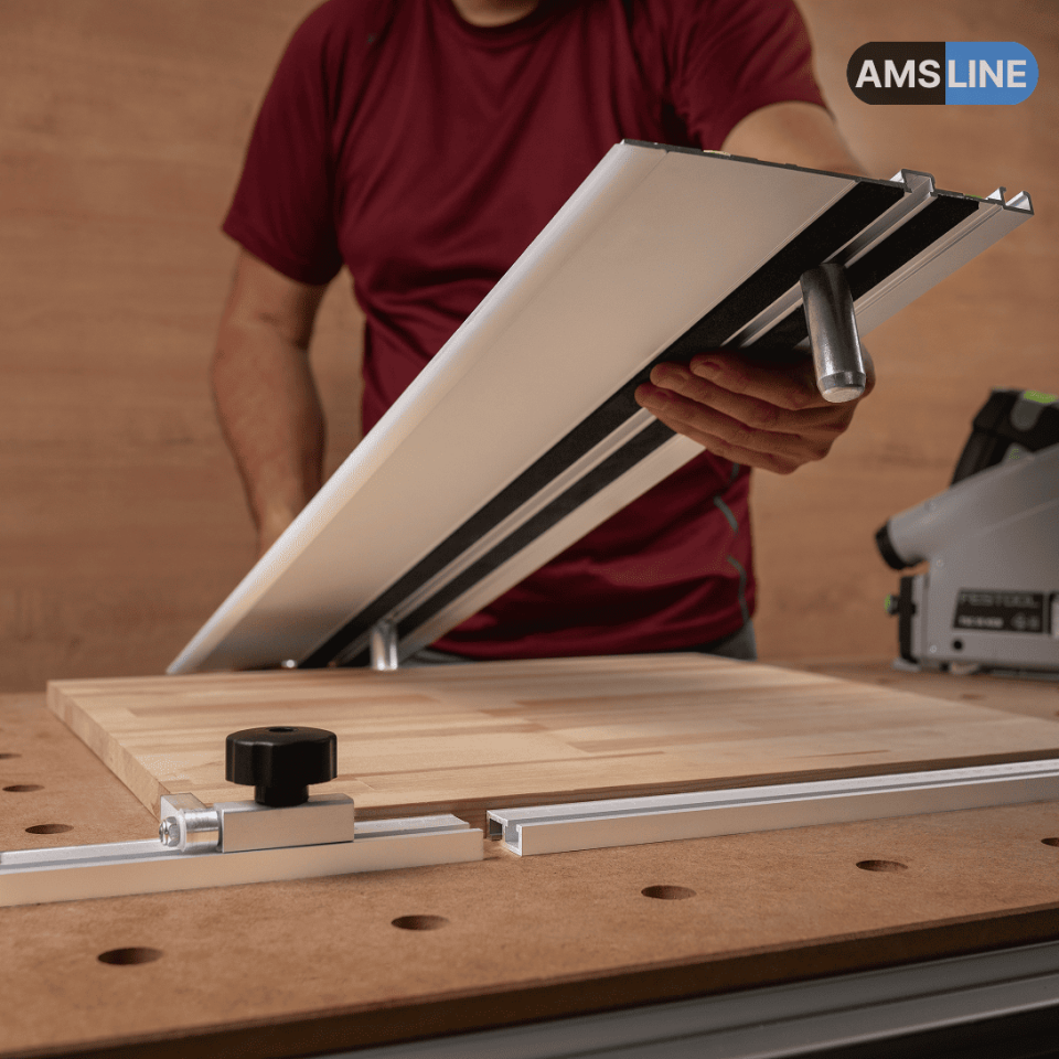 Алюминиевый профиль-упор AMS подходит для направляющих шин MR, FR, LINE, LINE 2.0, Wakita и Festool.