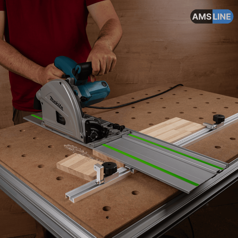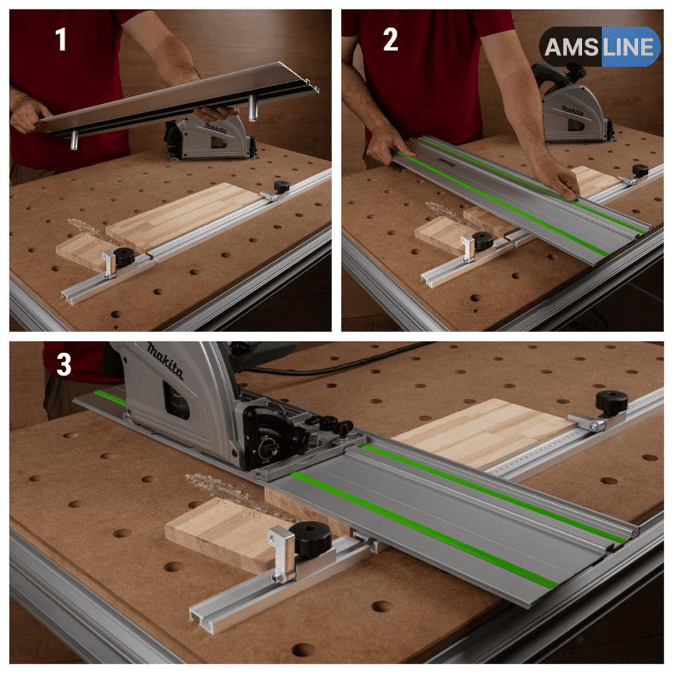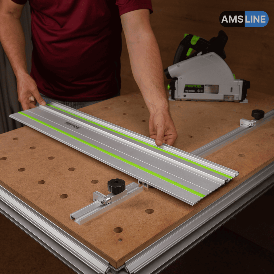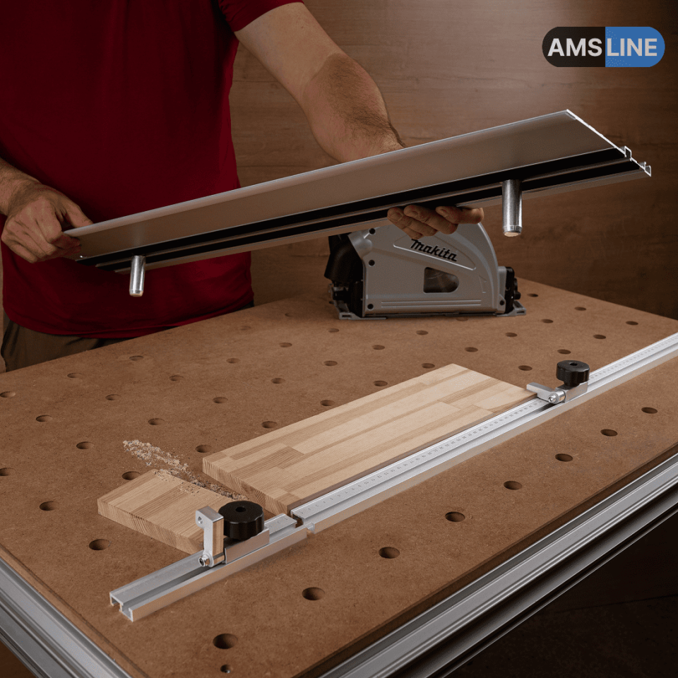 Алюминиевый профиль-упор AMS подходит для направляющих шин MR, FR, LINE, LINE 2.0, Wakita и Festool.