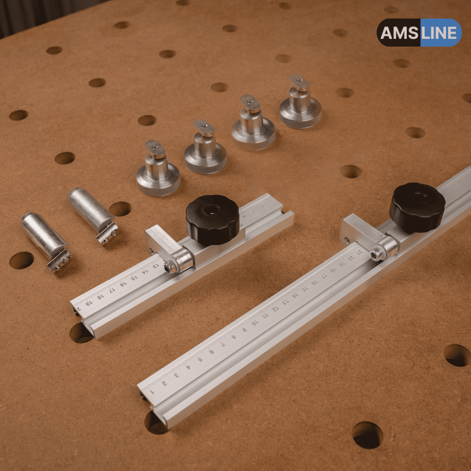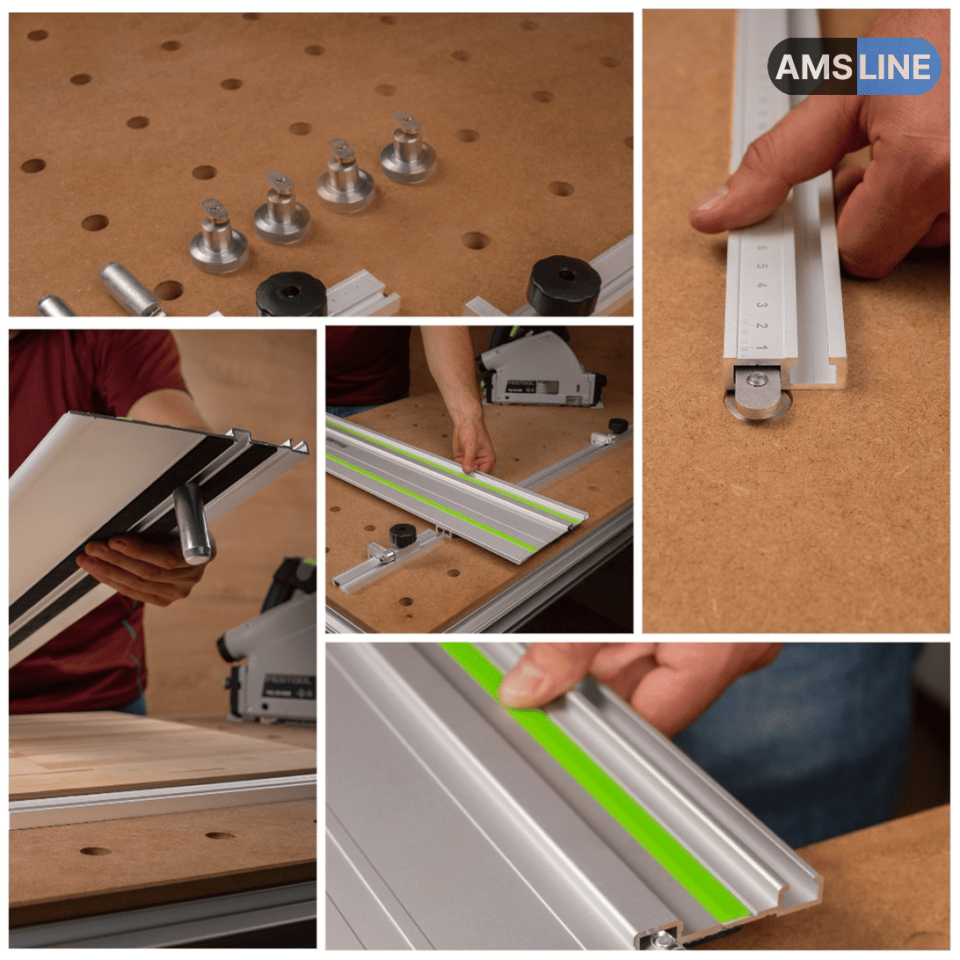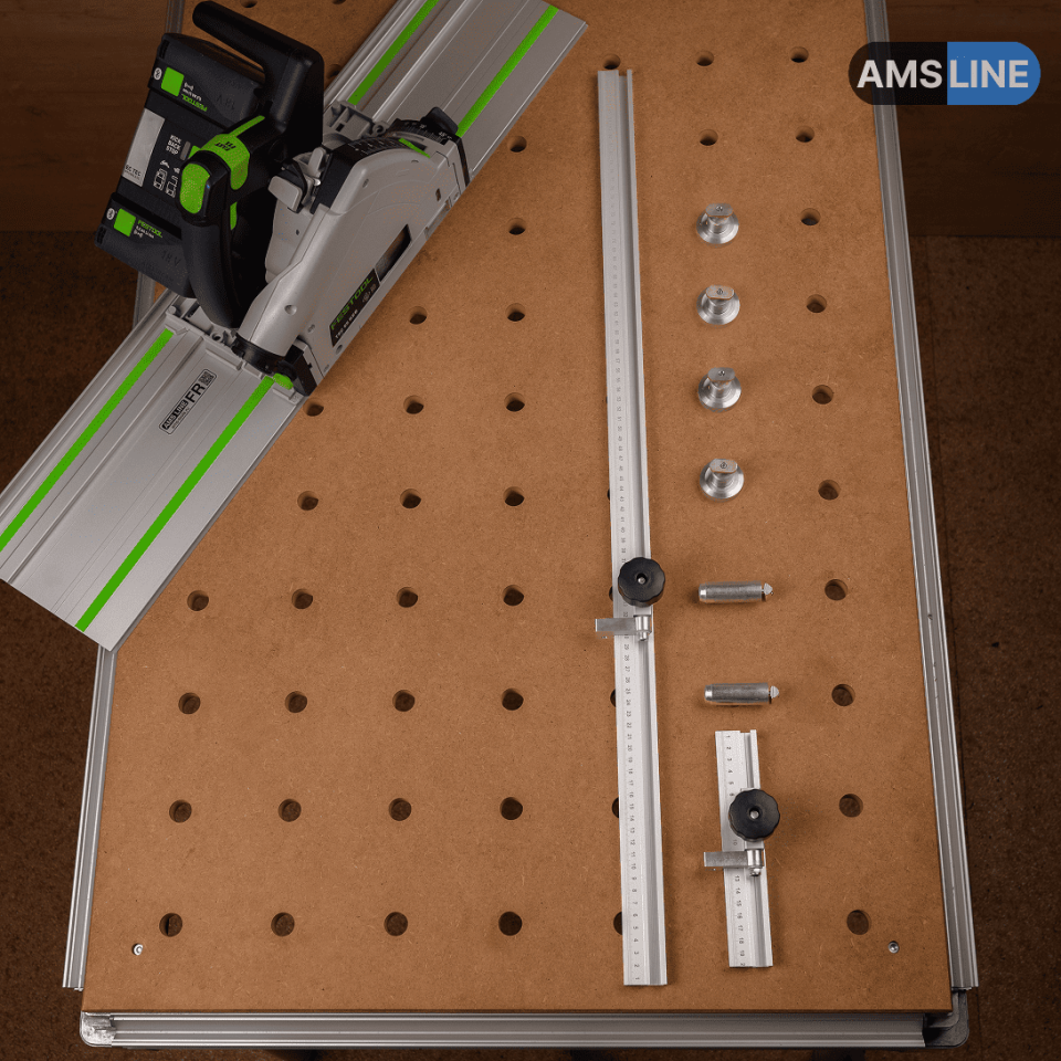 Предназначен для точного позиционирования направляющей шины на MFT-столе при пилении заготовок. Обеспечивает точность пиления и повторяемость результата.