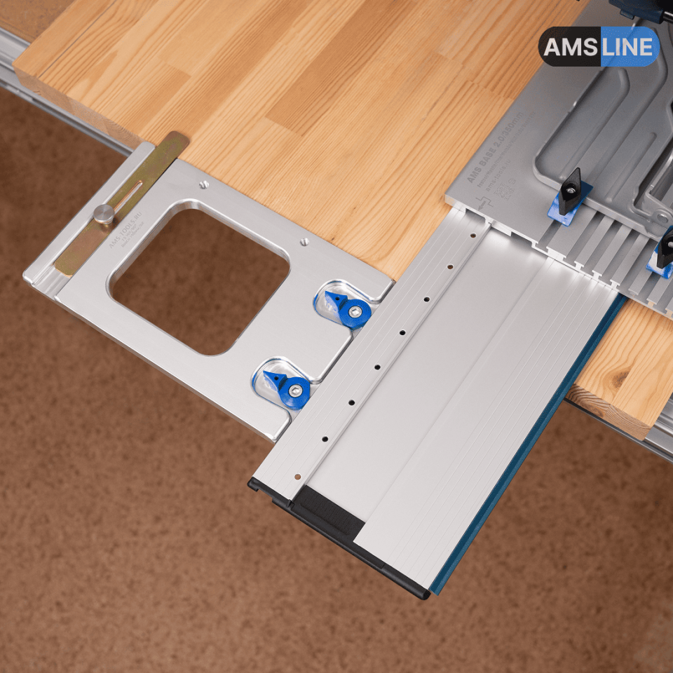 Угловой упор; угловой упор Бош; угловой упор для направляющих шин; для направляющей шины; упор для линейки: для направляющей линейки; упор линейки для циркулярной пилы; упор шины для дисковой пилы; угловой упор для шины Бош; упоры для направляющих шин; угловой упор FS WA; AMS; AMS Line; Амс Лайн